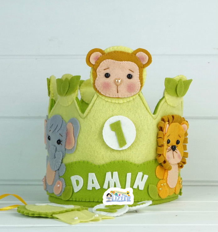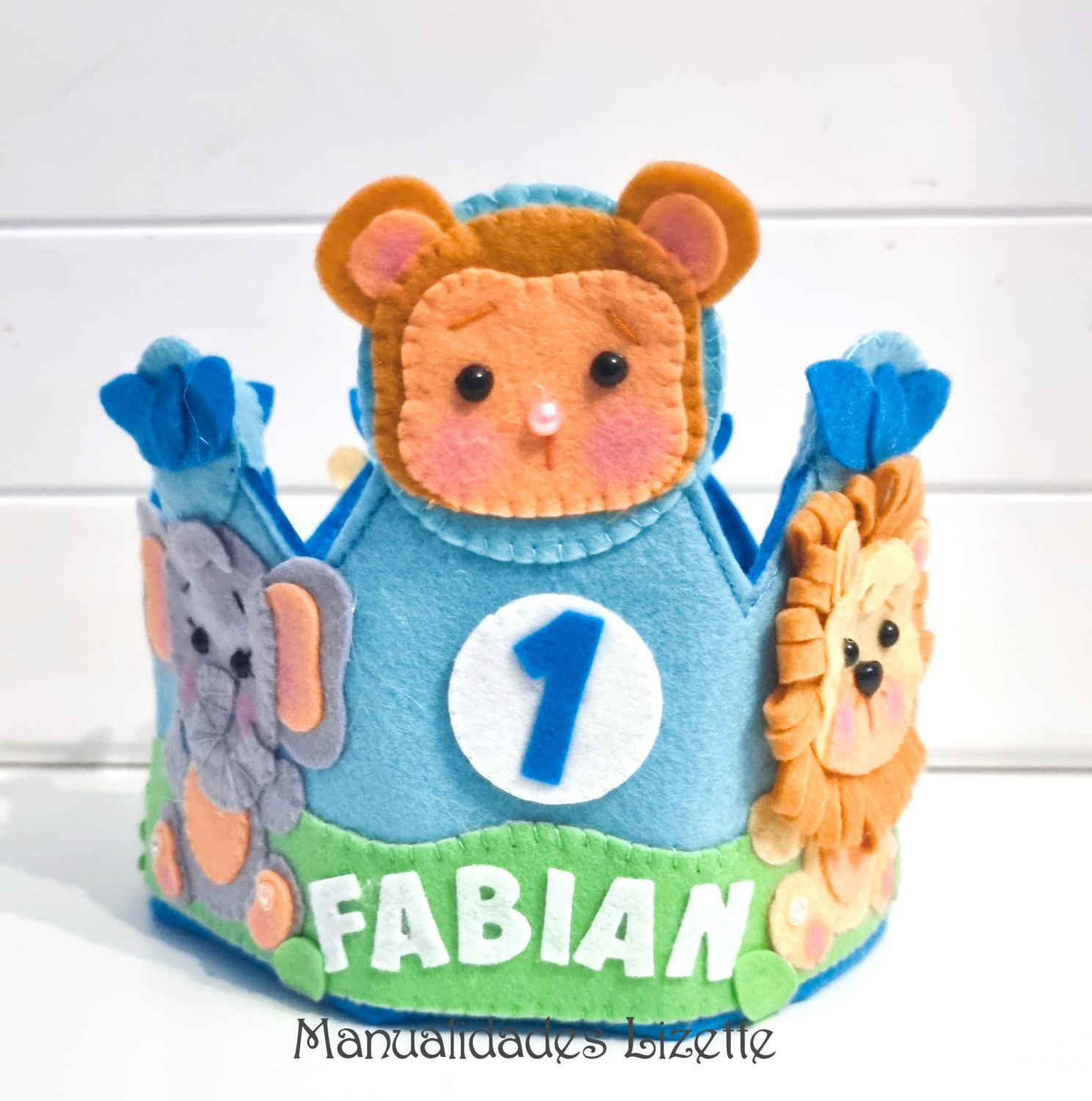 Haz que el cumpleaños de tu peque sea inolvidable con nuestra corona de cumpleaños personalizada de animales de la selva, hecha a mano con fieltro suave y mucho amor. 🌿 Esta preciosa corona infantil incluye un monito travieso, un elefante tierno y un leoncito valiente, perfectos para acompañar a tu niño o niña en su día especial. 🐒🐘🦁