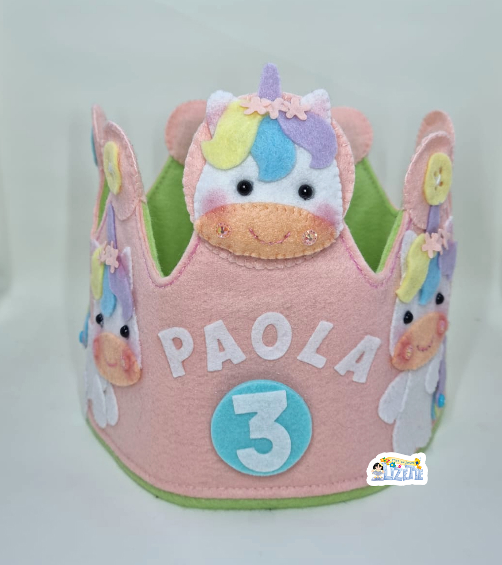 Convierte el cumpleaños de tu pequeña en un momento mágico con nuestra adorable corona de unicornio en fieltro personalizada.