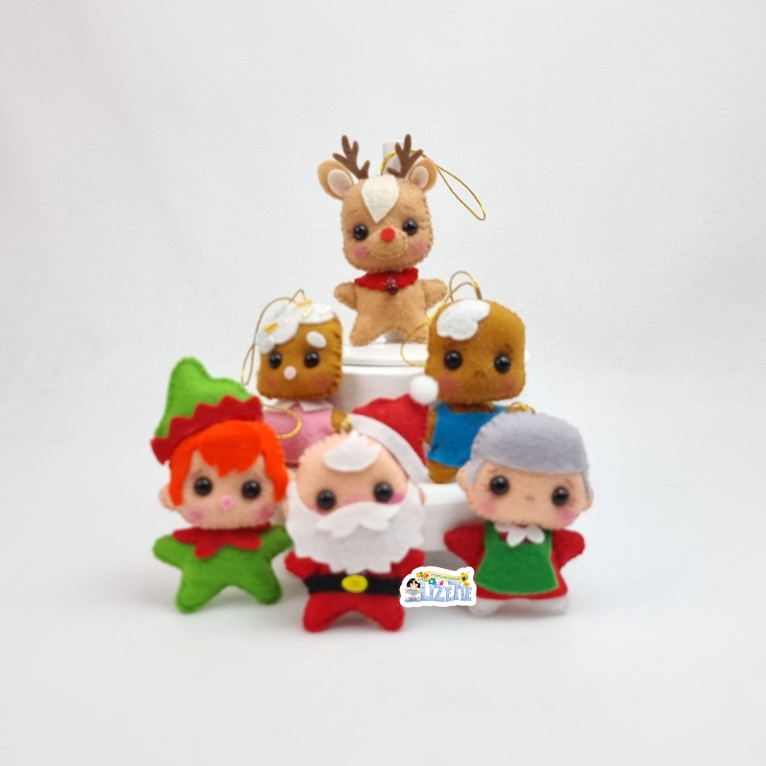 Cada personaje está confeccionado con materiales suaves y detalles cuidadosamente cosidos, lo que los convierte en piezas únicas y llenas de ternura para tu decoración navideña.