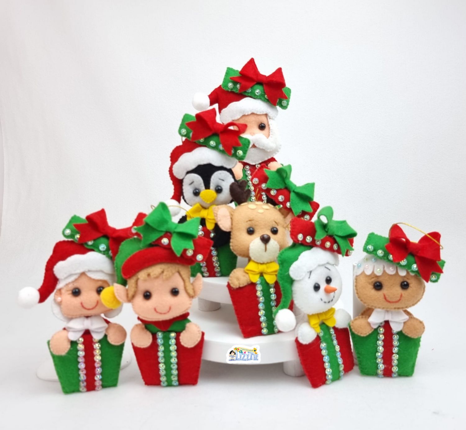 Haz que tu árbol de Navidad brille con ternura y alegría gracias a estos encantadores adornos de fieltro hechos a mano en forma de regalitos navideños con personajes.
