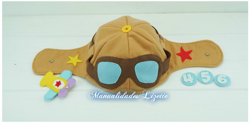 Fabricado en fieltro suave y ligero, este gorro de aviador para niños está pensado para ofrecer comodidad durante su uso, adaptándose fácilmente a la cabeza del niño sin apretar. Incluye elementos decorativos como estrellas, parches y números, que aportan un estilo divertido y aventurero, perfecto para pequeños amantes de los aviones.