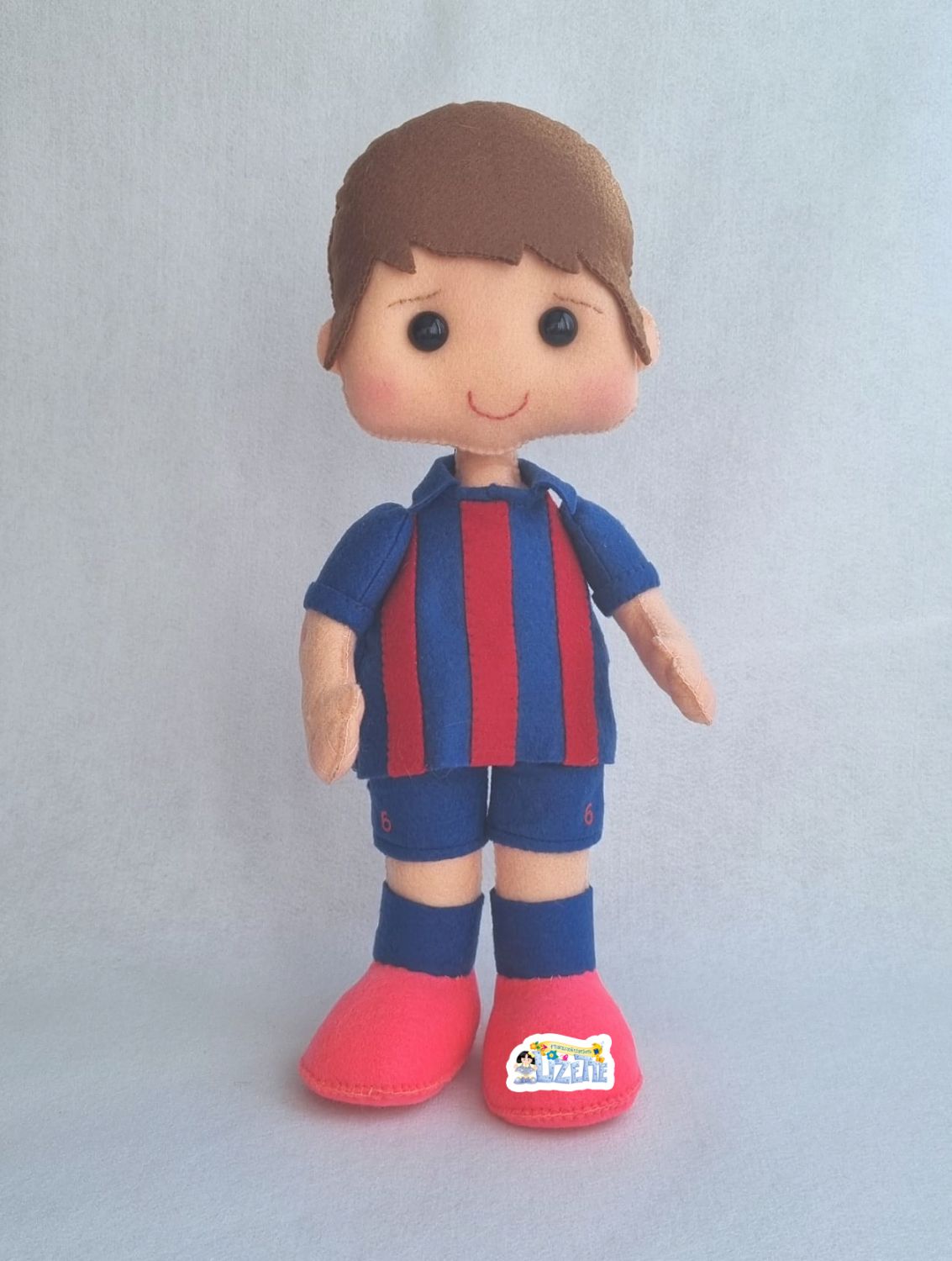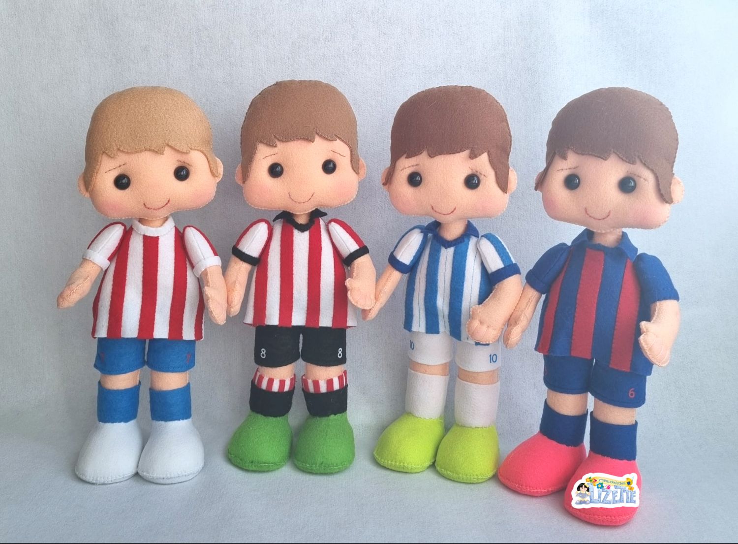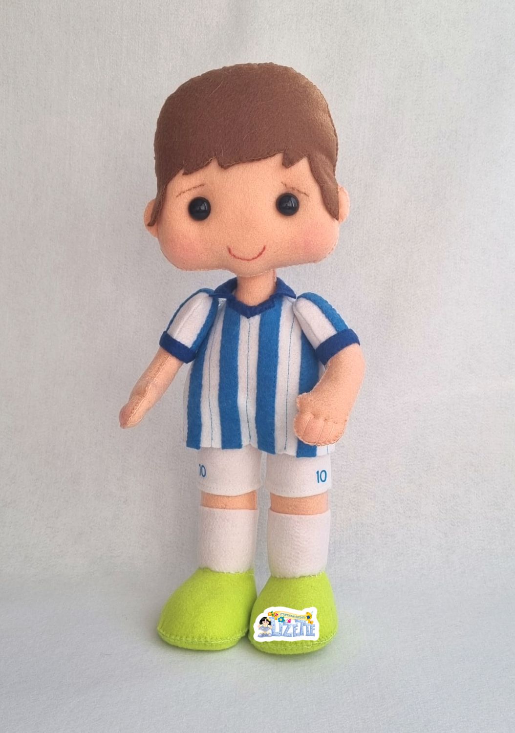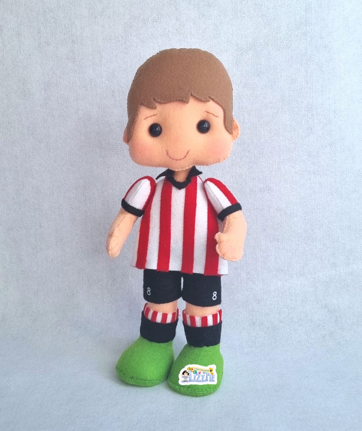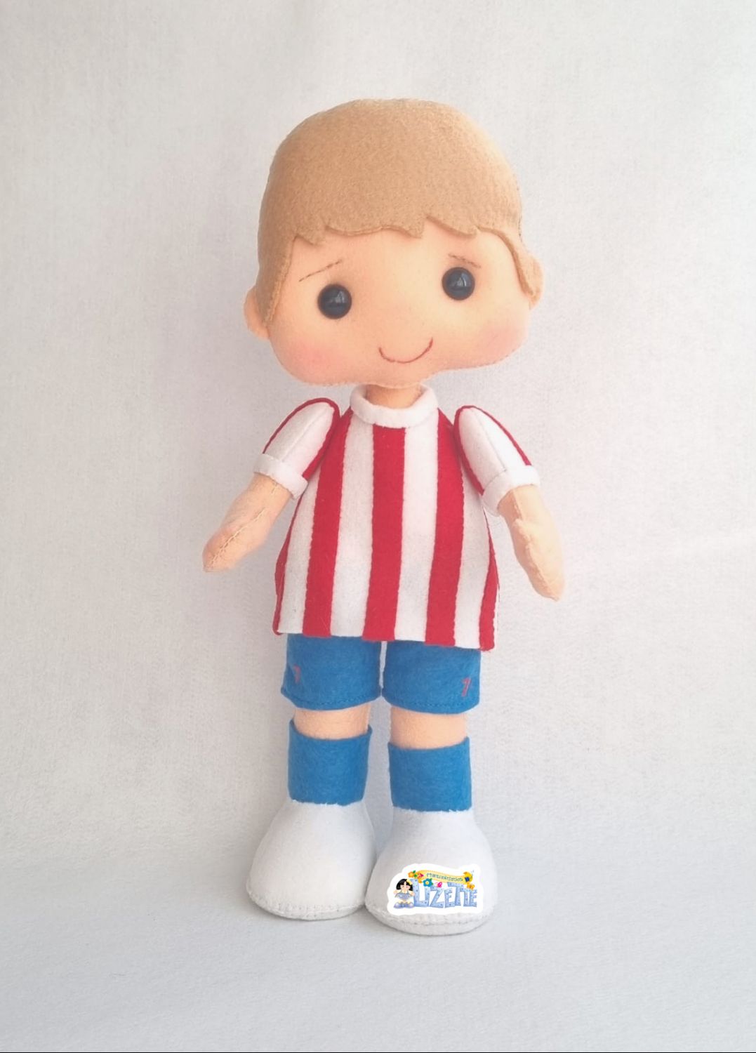 Este encantador muñeco futbolista personalizado está elaborado completamente a mano en fieltro de alta calidad, cuidando cada detalle del uniforme y la expresión para lograr un diseño tierno y único.