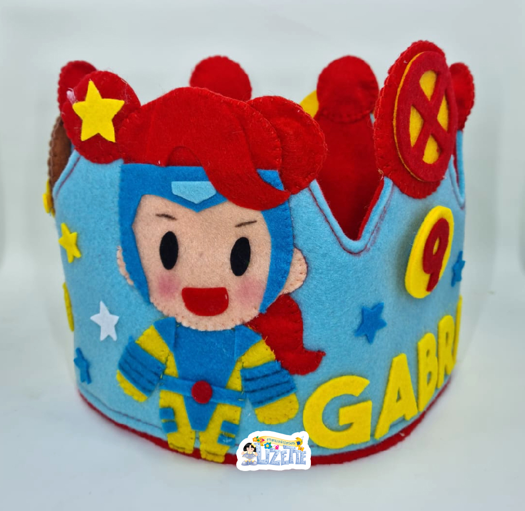 Hermosa corona artesanal en fieltro, inspirada en el universo de Flash, ideal para celebrar cumpleaños infantiles con un toque único y especial.